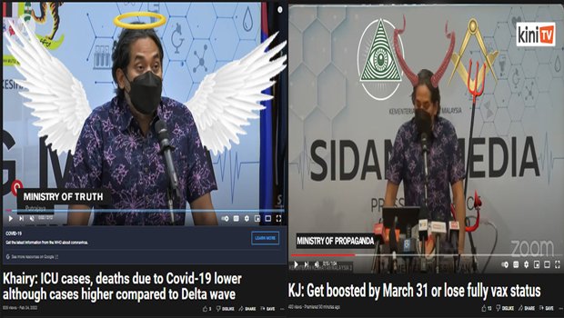 • KJ2: Aggressive, twitchy, heavily boosted. Warned that “Anyone not triple-poked by March 31st will lose their vaccinated status and possibly their right to order Grab.”